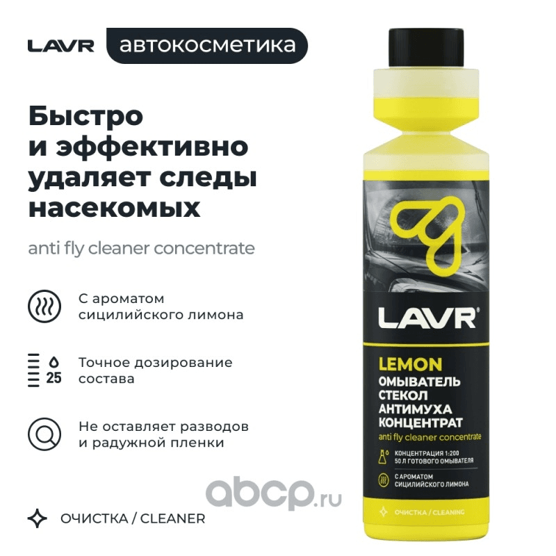 Омыватель стекол Антимуха Lemon концентрат 1:200 LAVR Ln1218, 250 мл