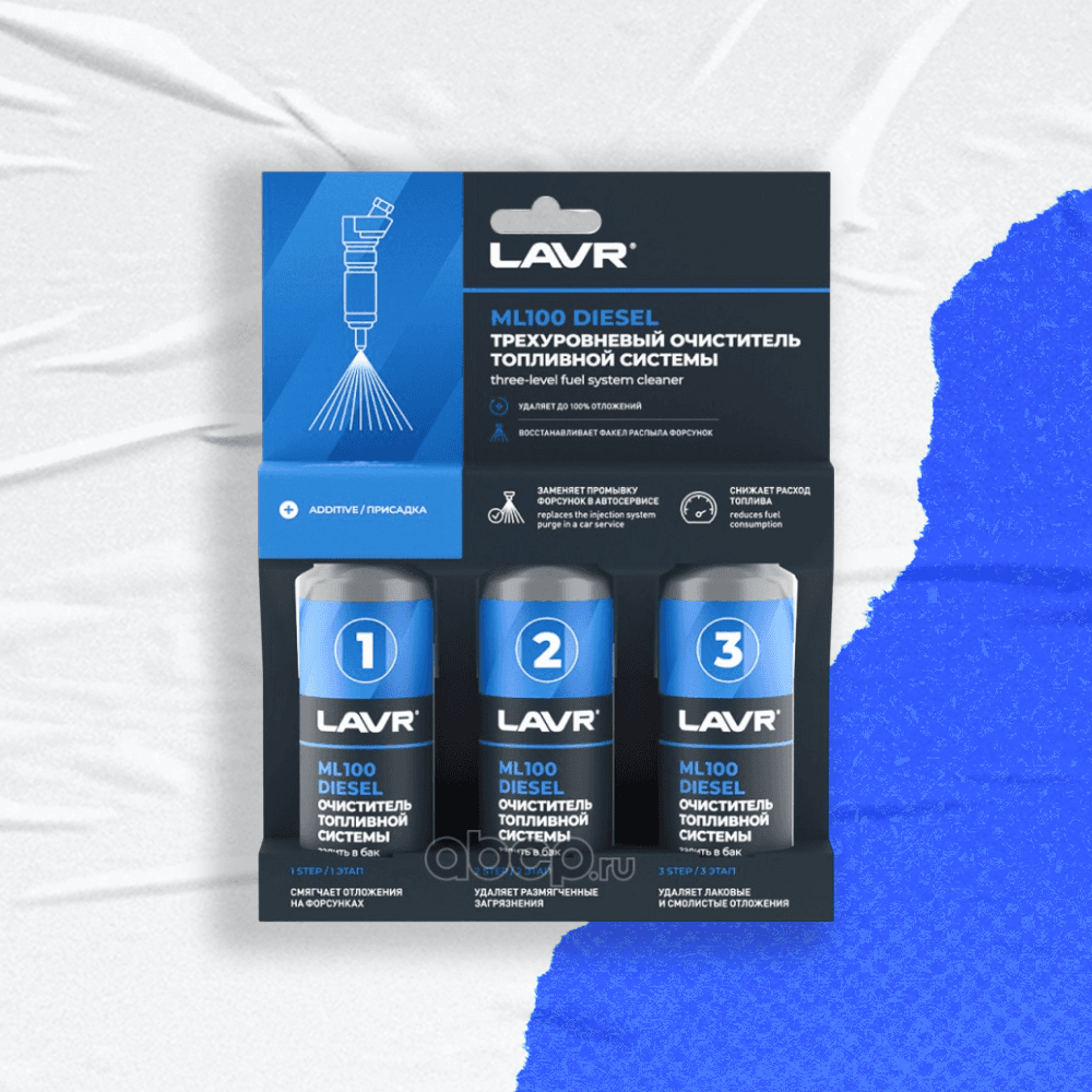ML100 DIESEL – трехкомпонентная присадка с запатентованными компонентами LAVR DSP / DET™ для последовательного добавления в топливный бак автомобиля с дизельным двигателем. Заменяет промывку форсунок в автосервисе и удаляет до 100% загрязнений. Шаг 1: удаляем рыхлые загрязнения и нагары на клапанах и форсунках. Шаг 2: устраняем лаковые и смолистые отложения. Шаг 3: смазываем, защищаем от коррозии и появления новых загрязнений. Применяется для всех типов систем впрыска дизельных двигателей.